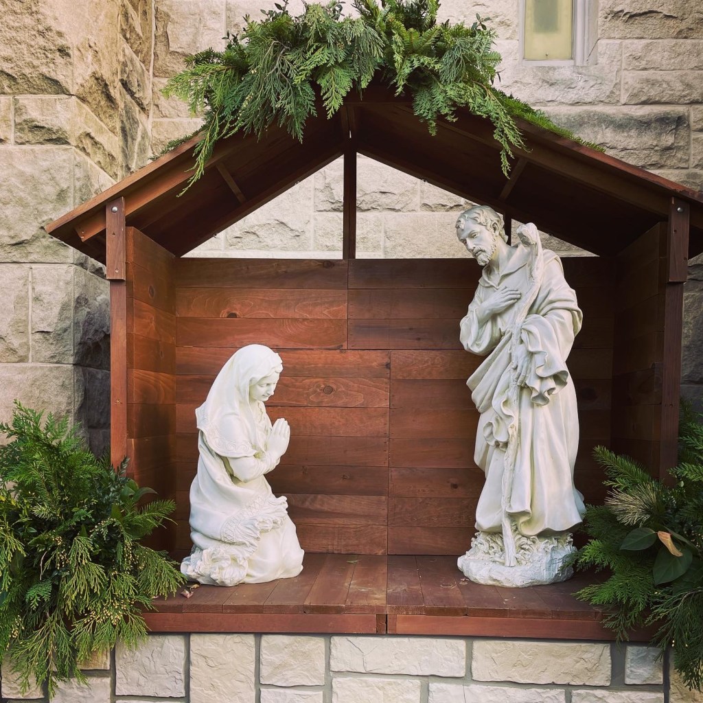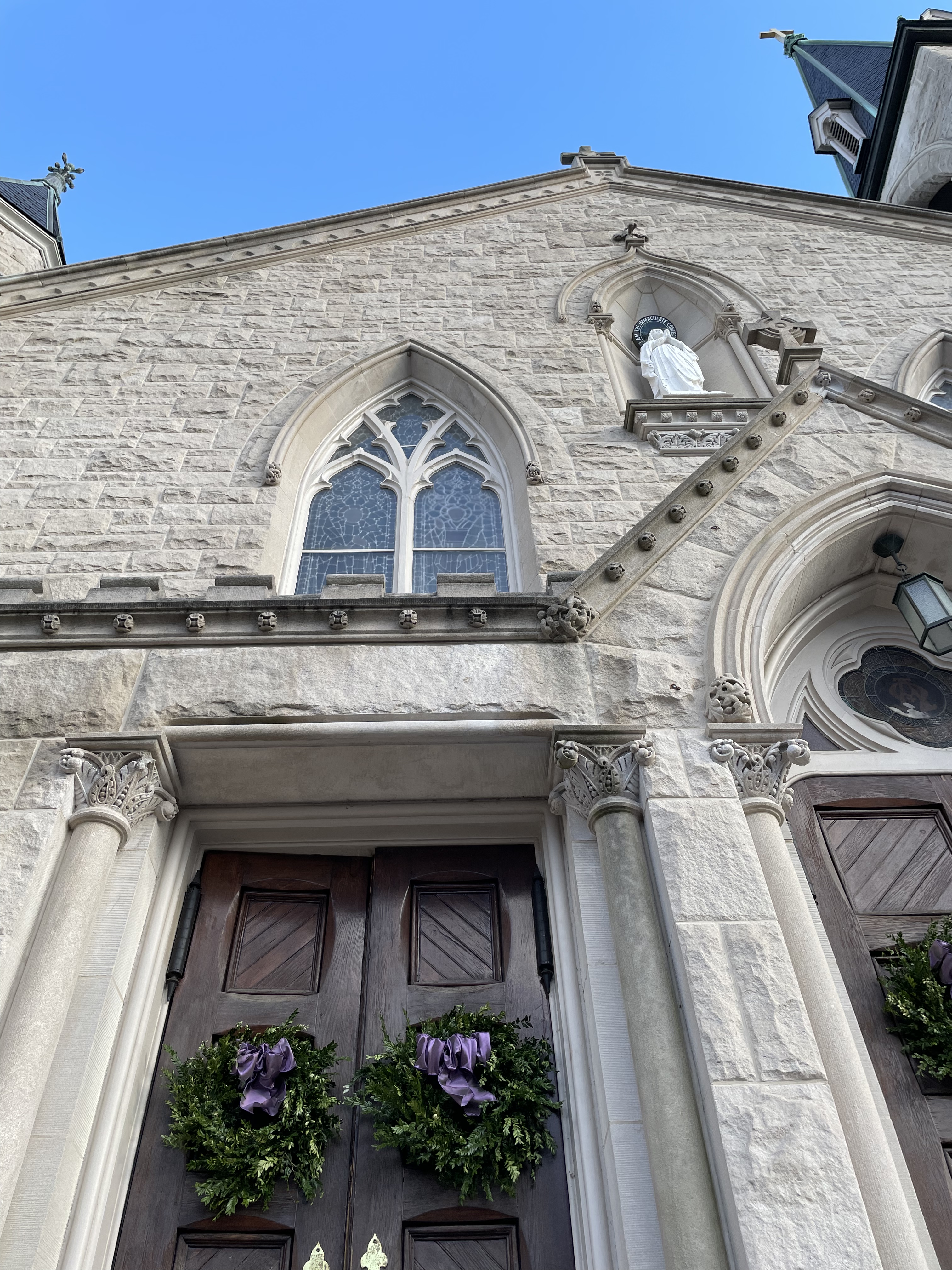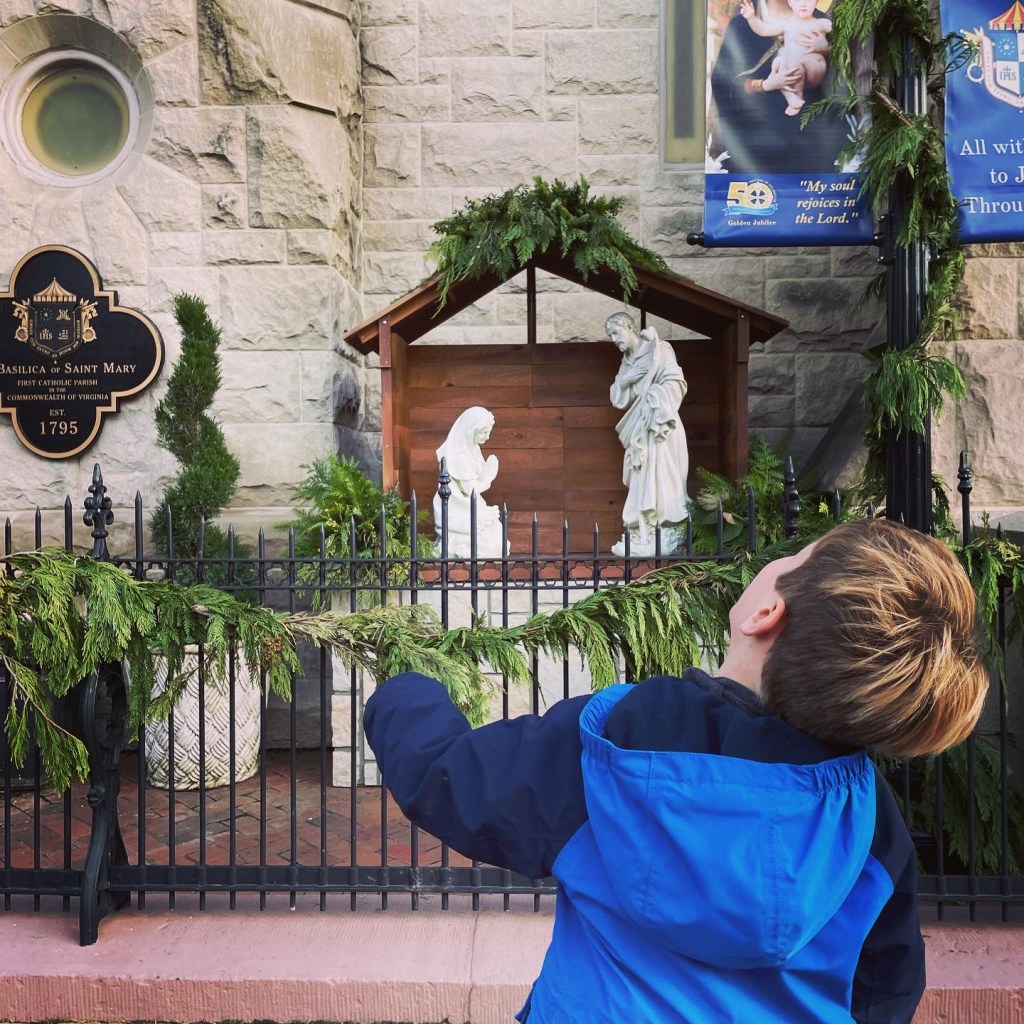 We started our walk this year at the Basilica of St. Mary. This is the very first Roman Catholic parish in Virginia and the historic church building is just gorgeous. And every Christmas they put out a beautiful Nativity scene. (Steve asked where the baby was. I said: it’s not Christmas yet. He hasn’t been born, silly.)