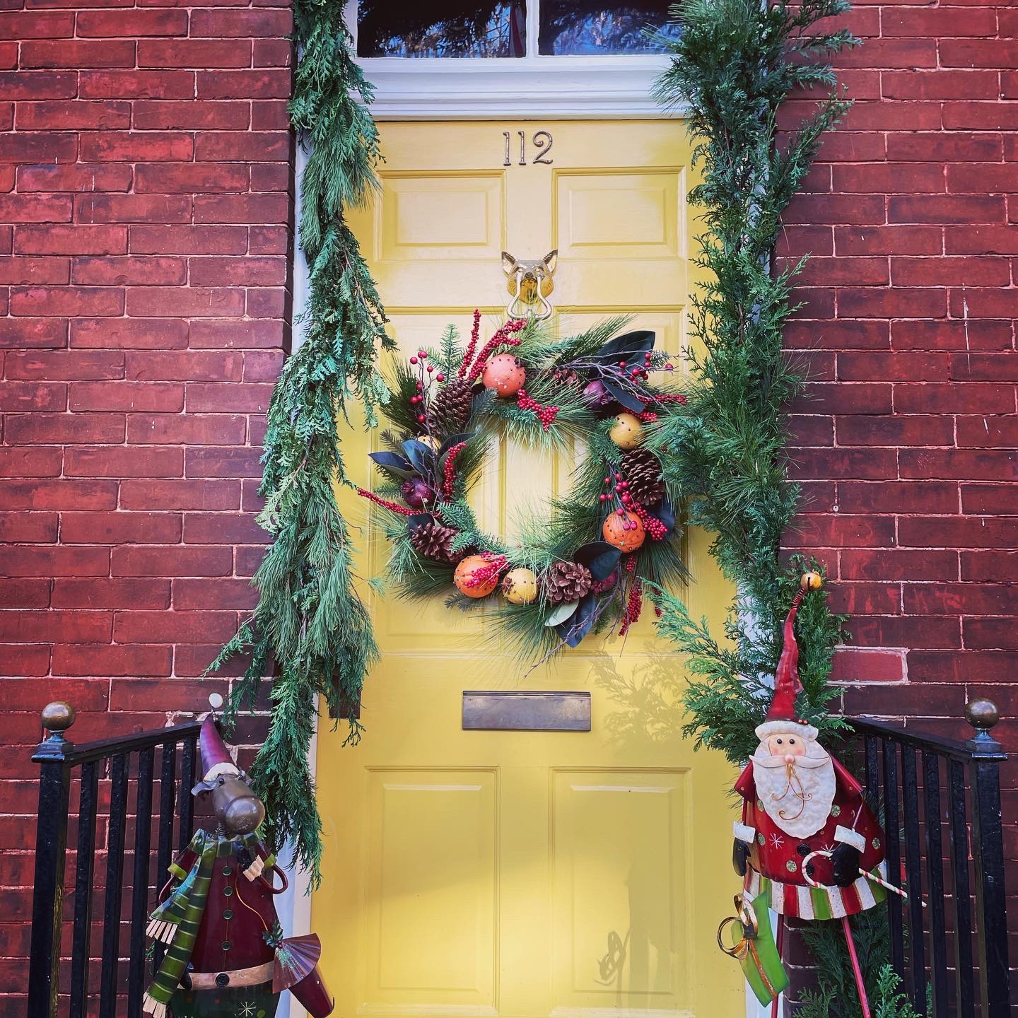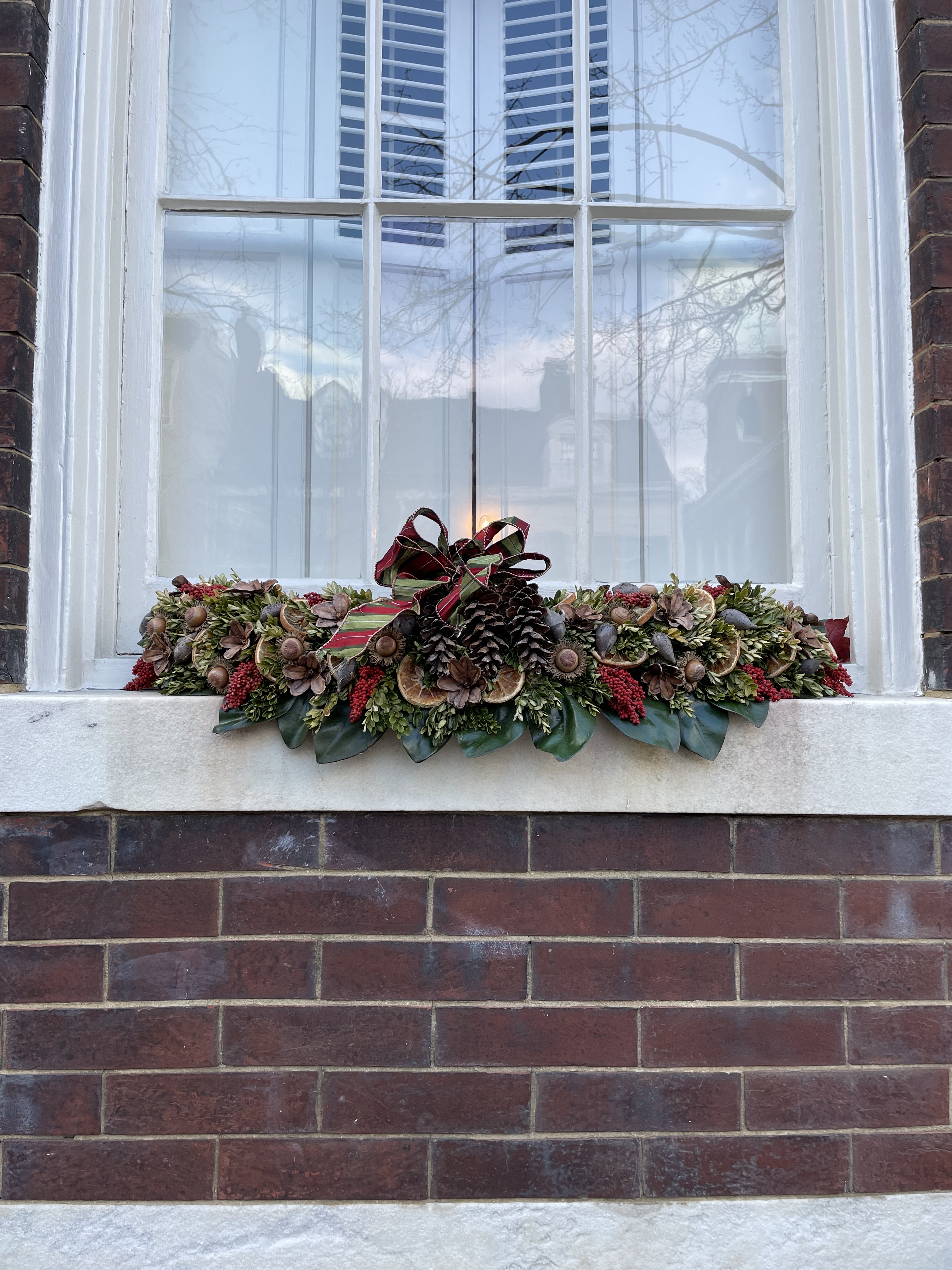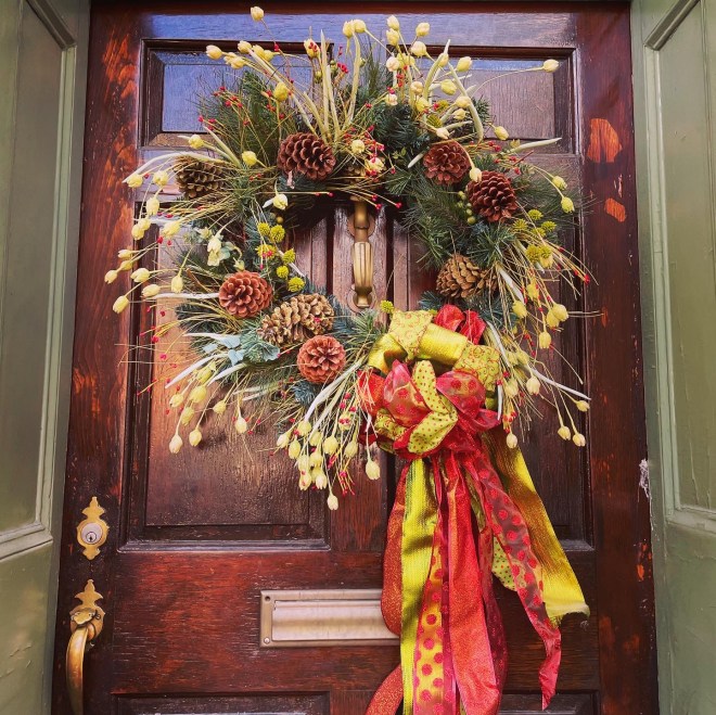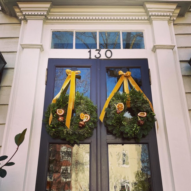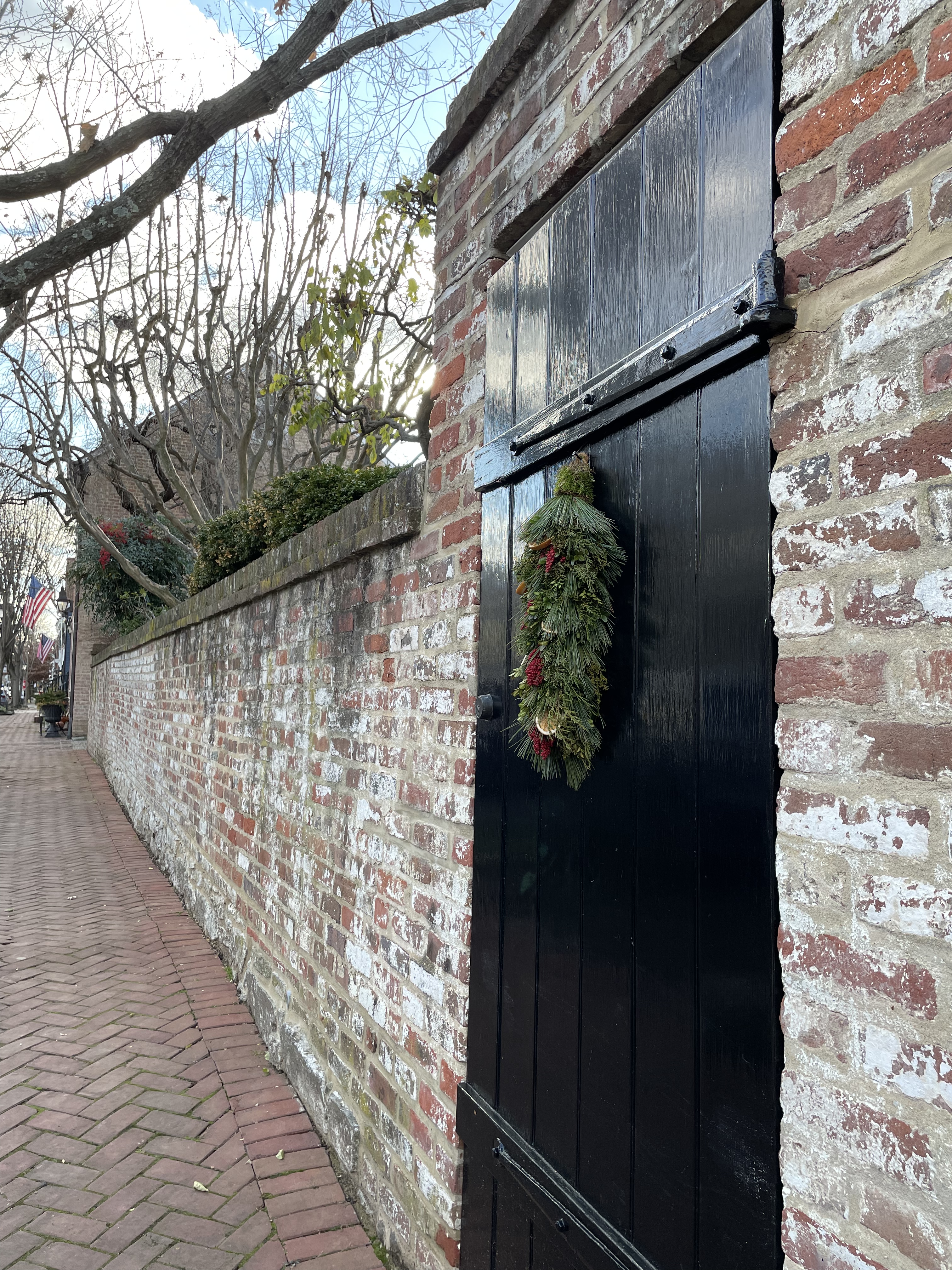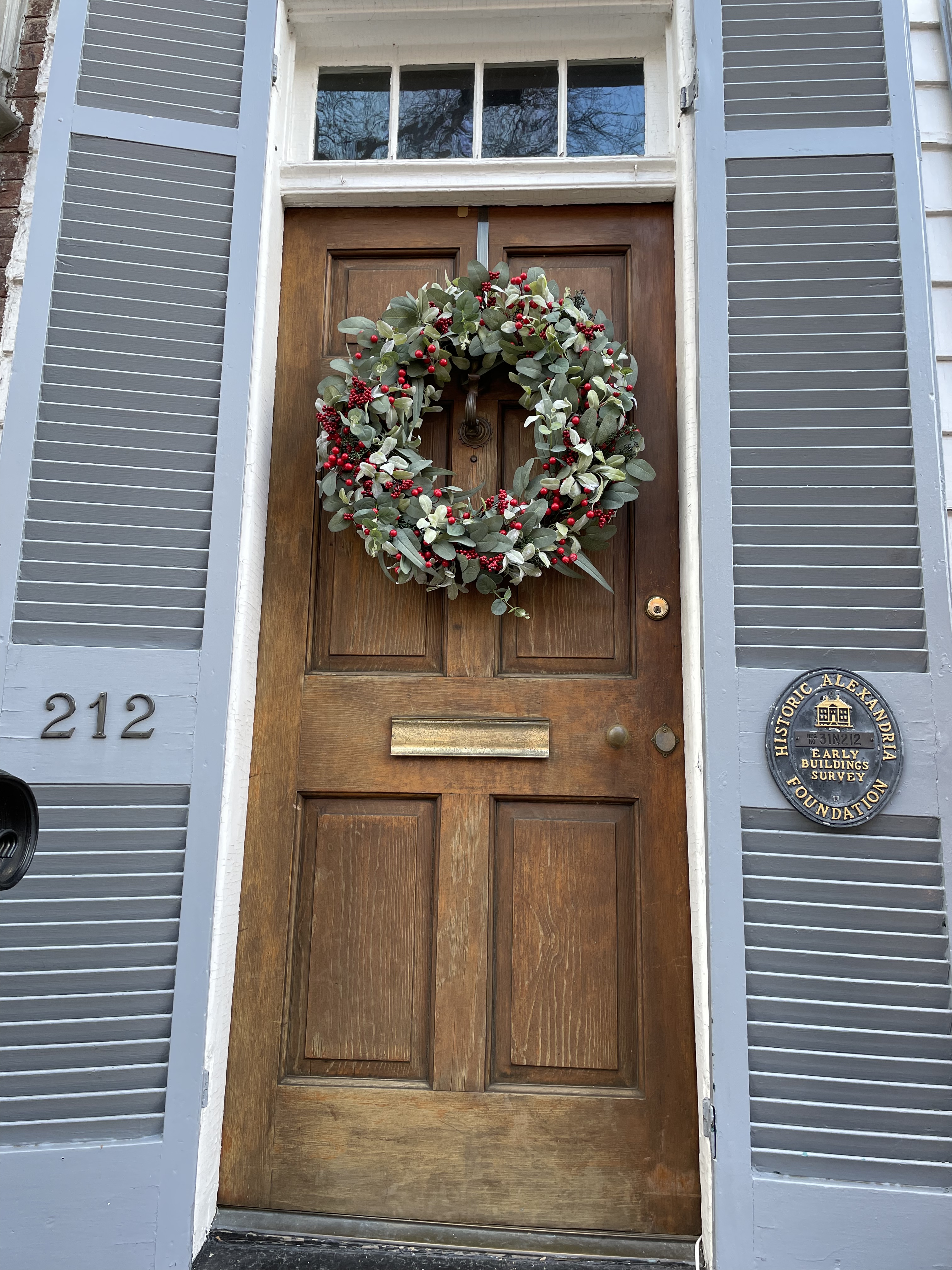 Finally – the other essential! Every year starting in about 2010, I think, Steve and I had a tradition of walking around Old Town Alexandria and looking at the holiday decorations. Old Town is a very historic area – pre-Revolution, actually – and the residents stay true to the look and feel of the neighborhood by choosing very traditional holiday decor. Lots of greenery and fruit. The wreaths are especially beautiful.