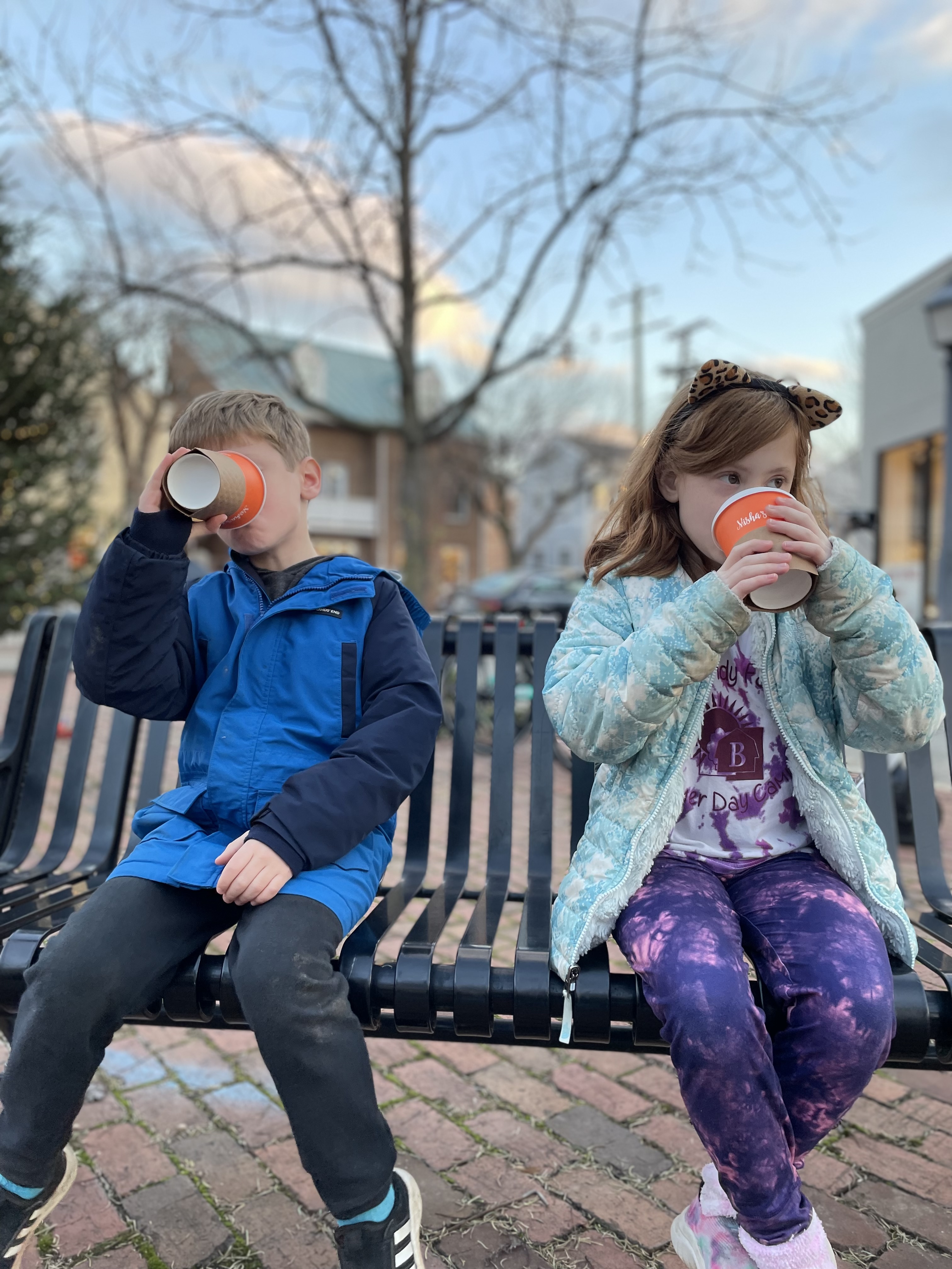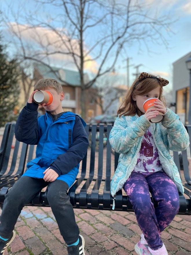 The other part of our Old Town decorations walk tradition is a festive beverage, of course! Before kids, Steve and I used to stop for a glass of wine. Then it became dinner at our favorite pizza joint. With COVID, the tradition has changed again; now it’s takeaway cocoa from Misha’s Coffee. But that’s the thing about favorite traditions – they can evolve over time. Maybe in a few years we’ll come full circle and be back to toasting the holiday with Pinot Noir.