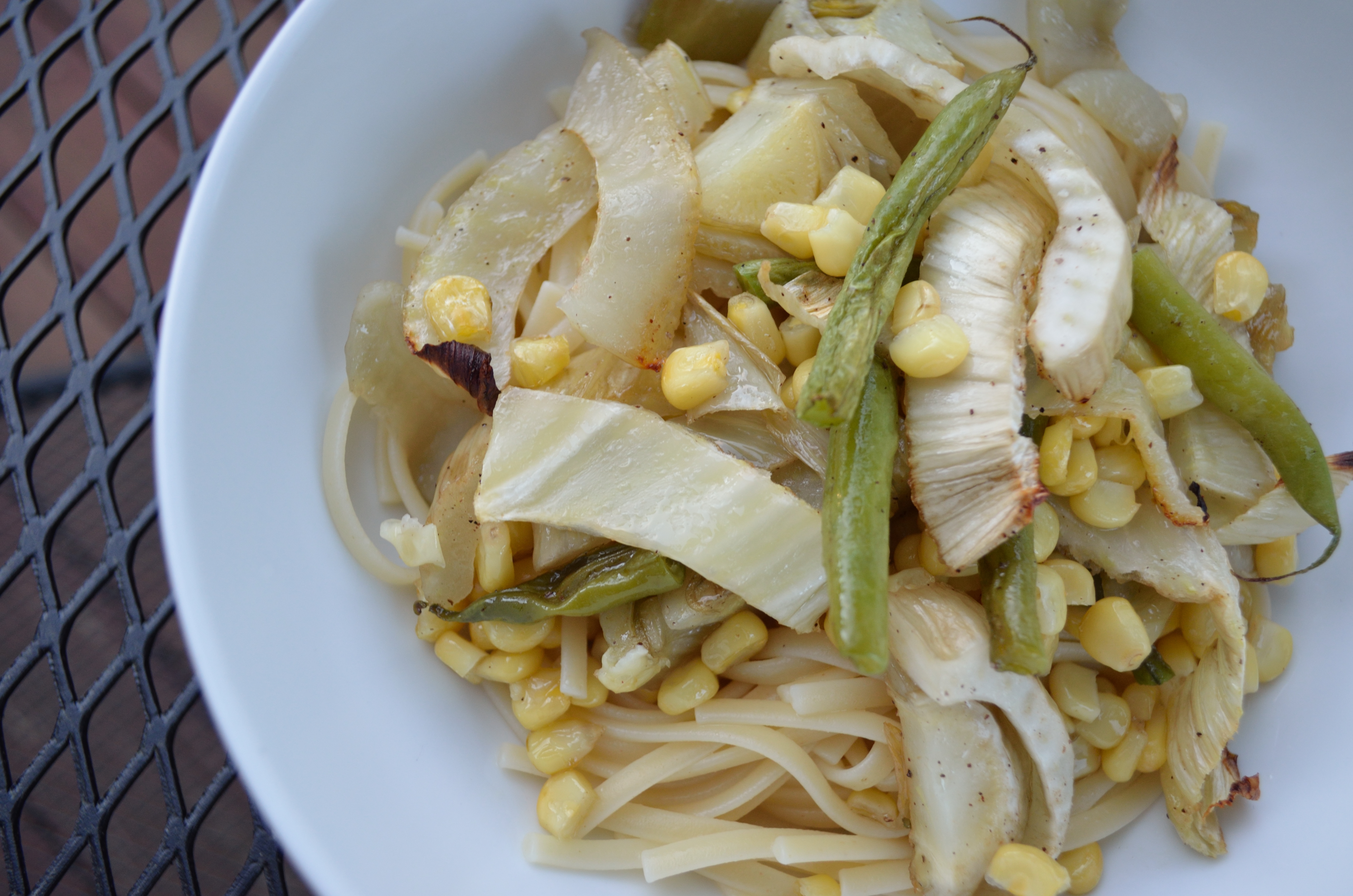 Tuesday: turkey in pesto over zoodles. The pesto made a repeat appearance on Tuesday (I made a double batch!) this time crowning sauteed ground turkey over zucchini noodles. The kids passed on the pesto both nights (I think the green color scared them) and they ate ground turkey over buttered dinosaur-shaped pasta, while the grownups feasted on zucchini.