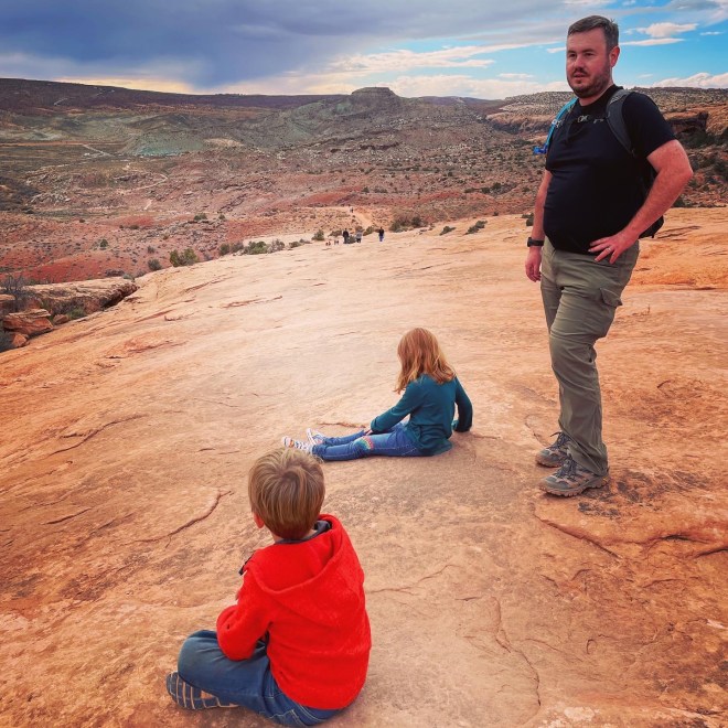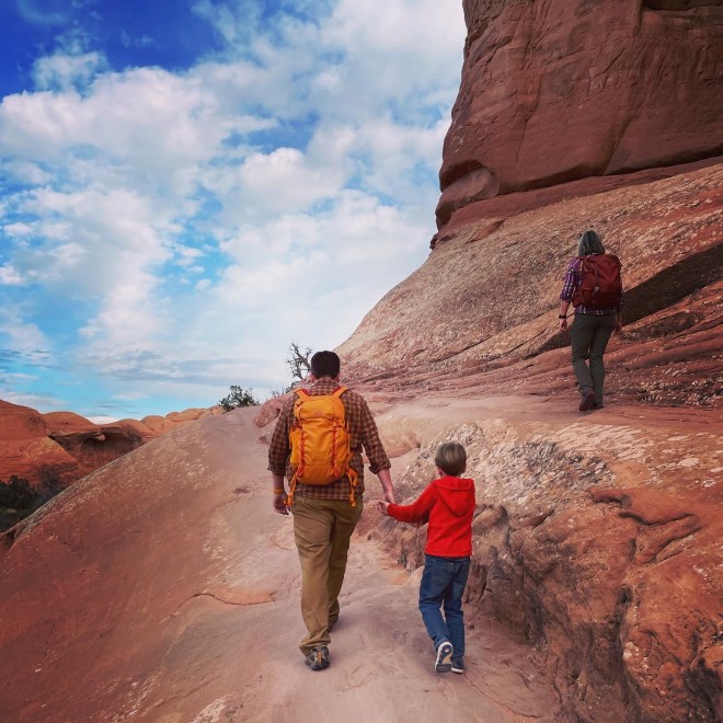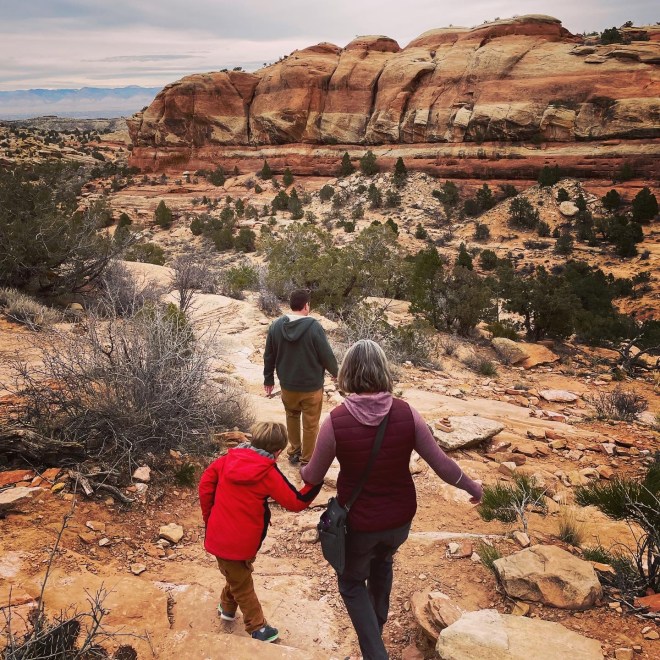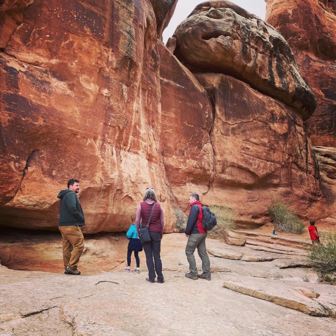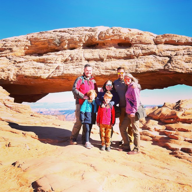 One last stop in Utah, and it was a good one indeed: Canyonlands National Park (via a quick stop at Arches, for the second time in a week, to turn in Junior Ranger booklets and take the oath). Knowing that we only had a very short time – and there is so much to explore in this park; we could spend a week here, and maybe someday we will – Dan planned for us to hit the highlight of all highlights: Mesa Arch.