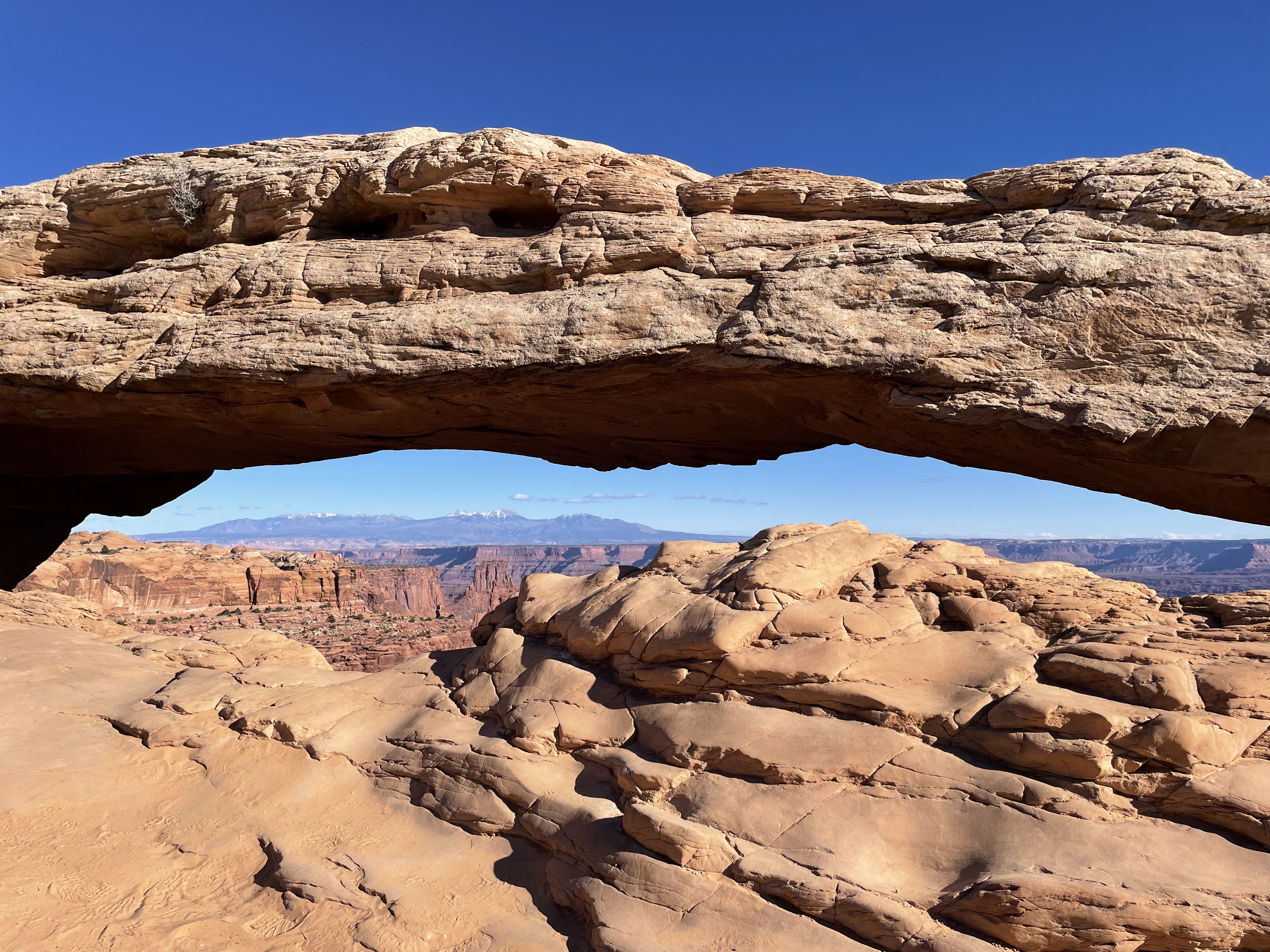 Mesa Arch was also much less crowded than Delicate Arch, and we were able to get right up under the arch and peer through, and what a reward.
