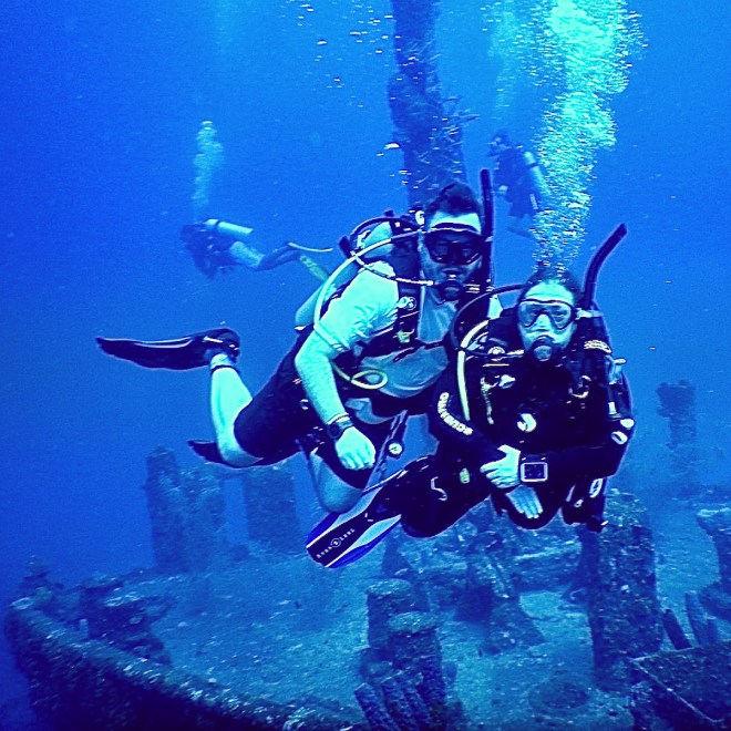 The couple that wreck dives together stays together, right Steve? I love this picture. Look how hardcore we look!