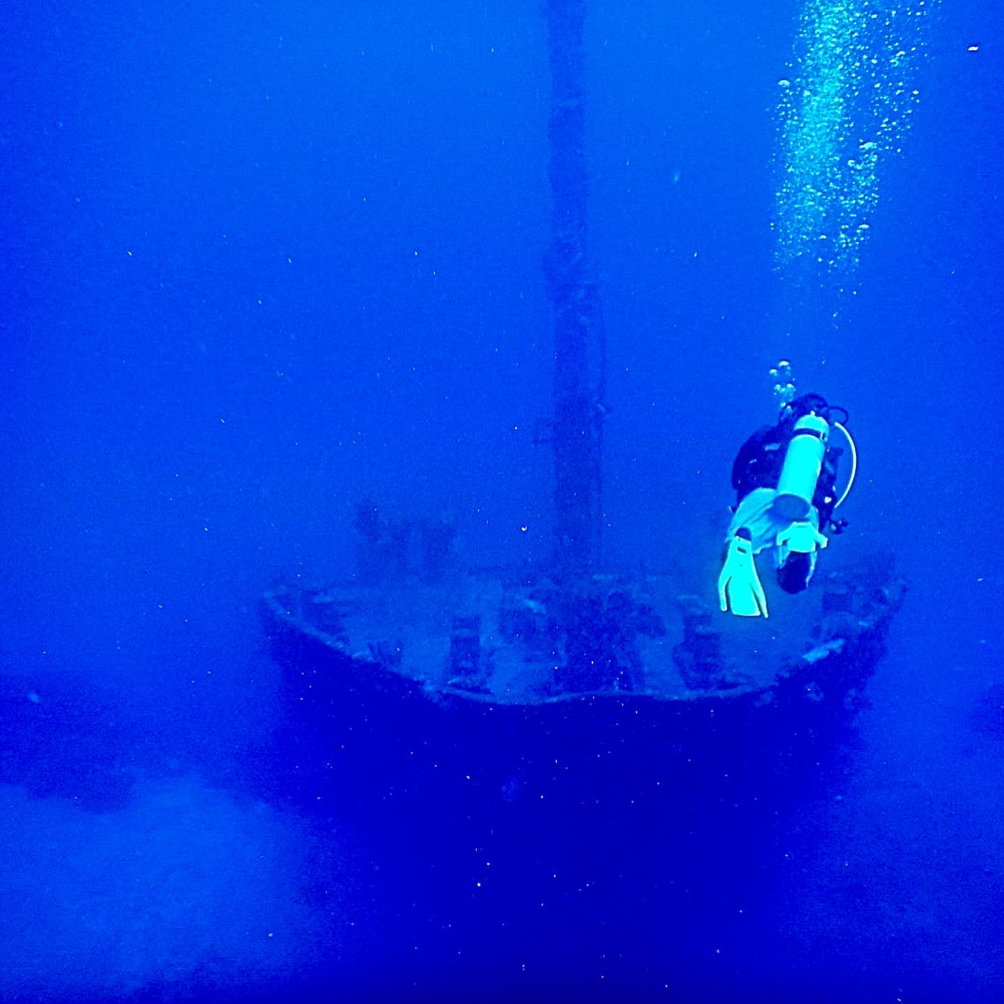 Speaking of spooky, Danny took us on one dive to the El Aguila shipwreck. Let me tell you, swimming along through endless blue gloom and then a mast looms up in front of you is a vibe. I felt a little bit like The Little Mermaid.