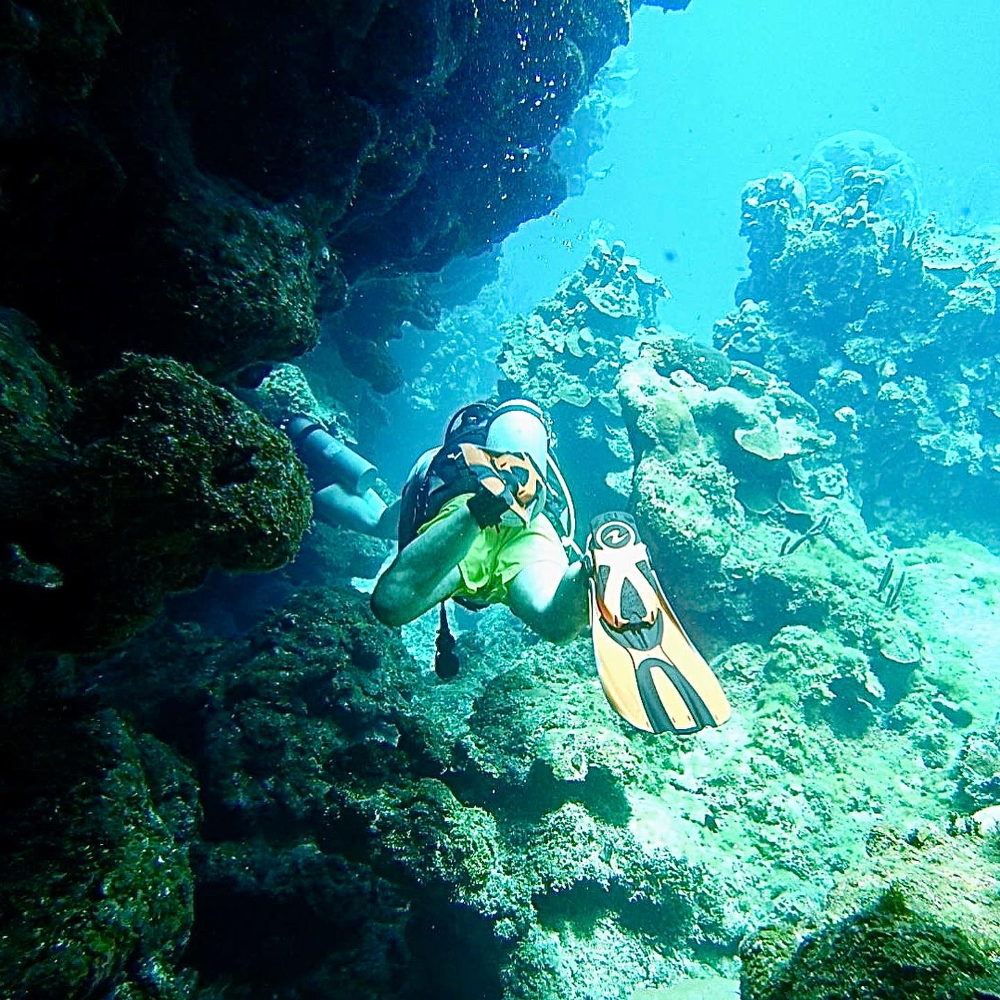 Tunnels, swim-throughs and tight squeezes. Steve didn’t really enjoy these, but our divemaster added them into a few dives because Alex and Emily did. (Important for everyone to get to do what they like!) I viewed them as a personal challenge: could I make it through a swim-through without freaking out? I was really proud of myself for tackling this more intermediate level diving.