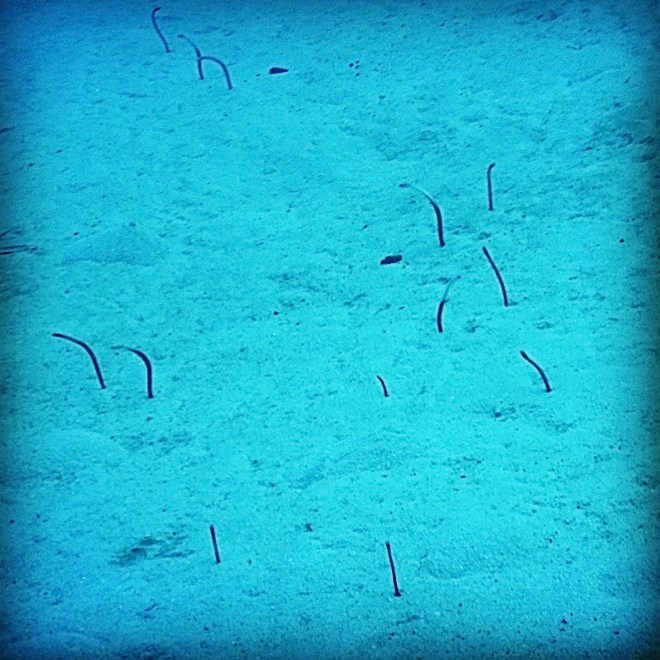 Ain’t no party like a garden eel dance party, ’cause a garden eel dance party is underwater! Mandy’s Eel Garden was a highlight in a week of highlights. And the garden eels swaying in the gentle current – well, I never thought I’d use the word “adorable” to describe eels, but they really were.