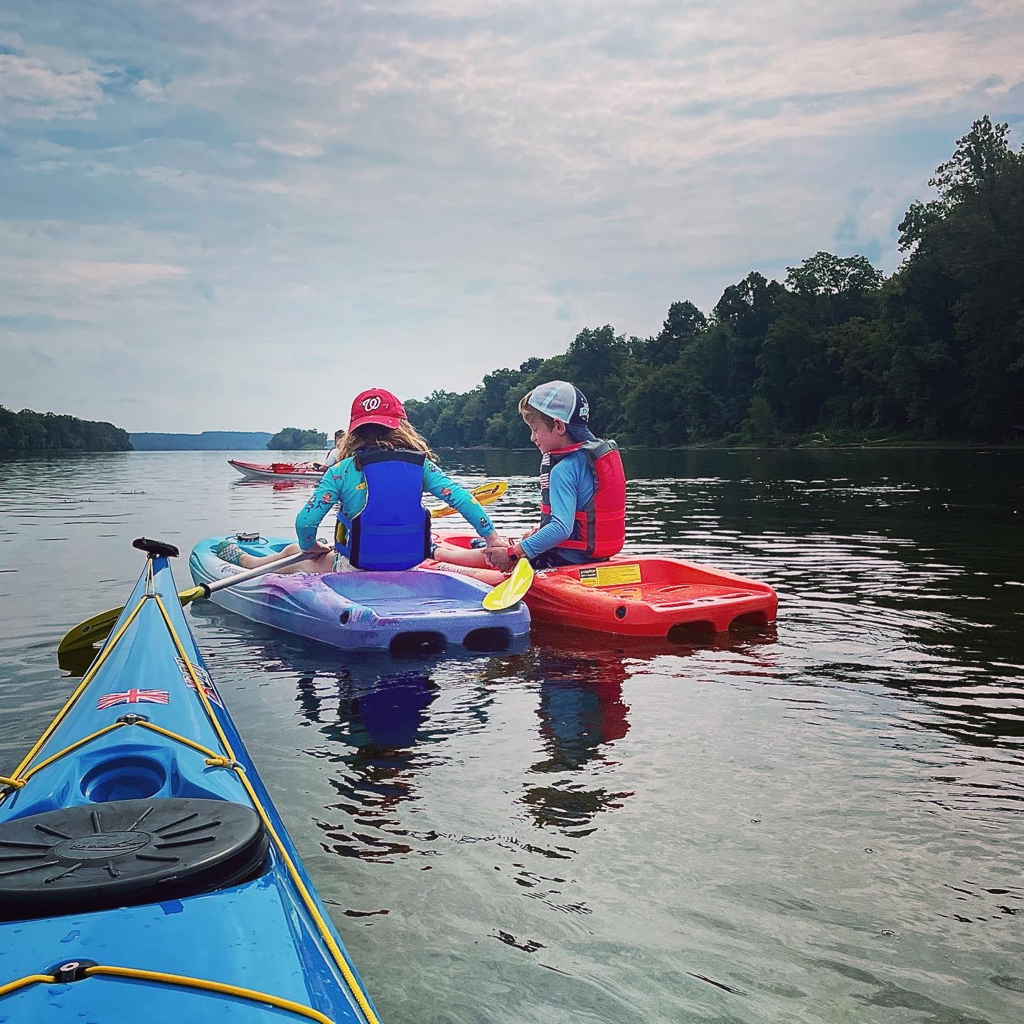 When not reading over the weekend, I was on the water with these three chuckleheads. Look at this: two kids in their own kayaks! It’s a Labor Day miracle! Also, get a load of the hand-holding. Eeeeeeeeeee.