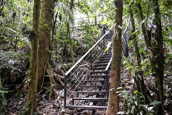 Most of the trail elevation gain was via a couple of green-painted metal staircases that blended in with the canopy.
