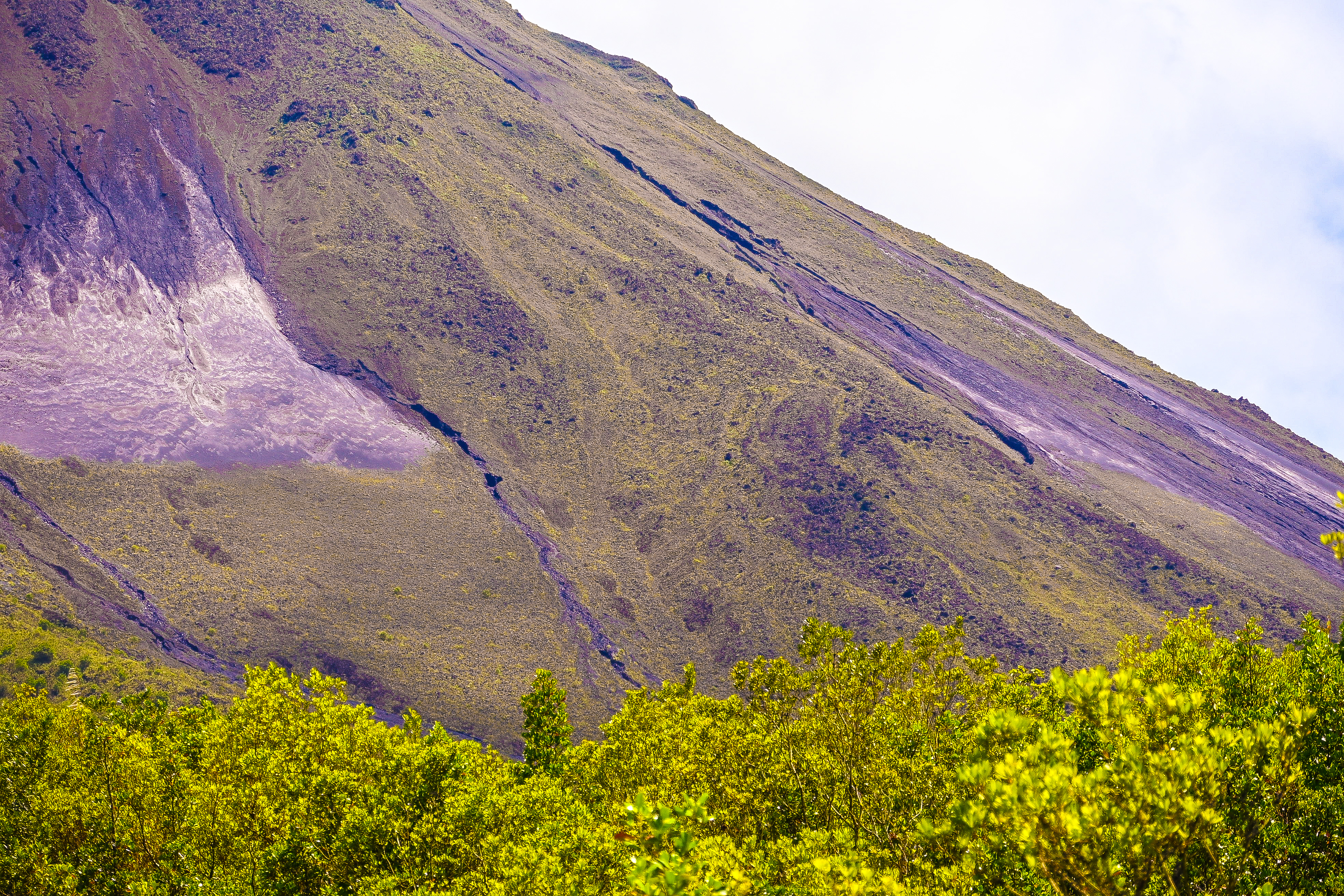 Arenal is a massive cone-shaped volcano that towers over the surrounding area, including the town of La Fortuna and the neighboring Lake Arenal. The rich volcanic soil, bubbling hot springs and gorgeous flowers growing in the rich volcanic soil draw enthusiastic visitors – including us. Arenal erupted in 1968 and buried a village, and the Arenal 1968 trail acts as a monument to the tragic event.