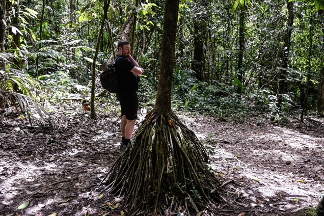 The trail back was fascinating too. It was always cool to see the famous walking palms (socratea exorrhiza). The trees “walk” from sunlight to shade by growing their roots in the direction they want to travel and then allowing old roots to lift out of the ground and die – wild. Did we call them Ents? You know we did.
