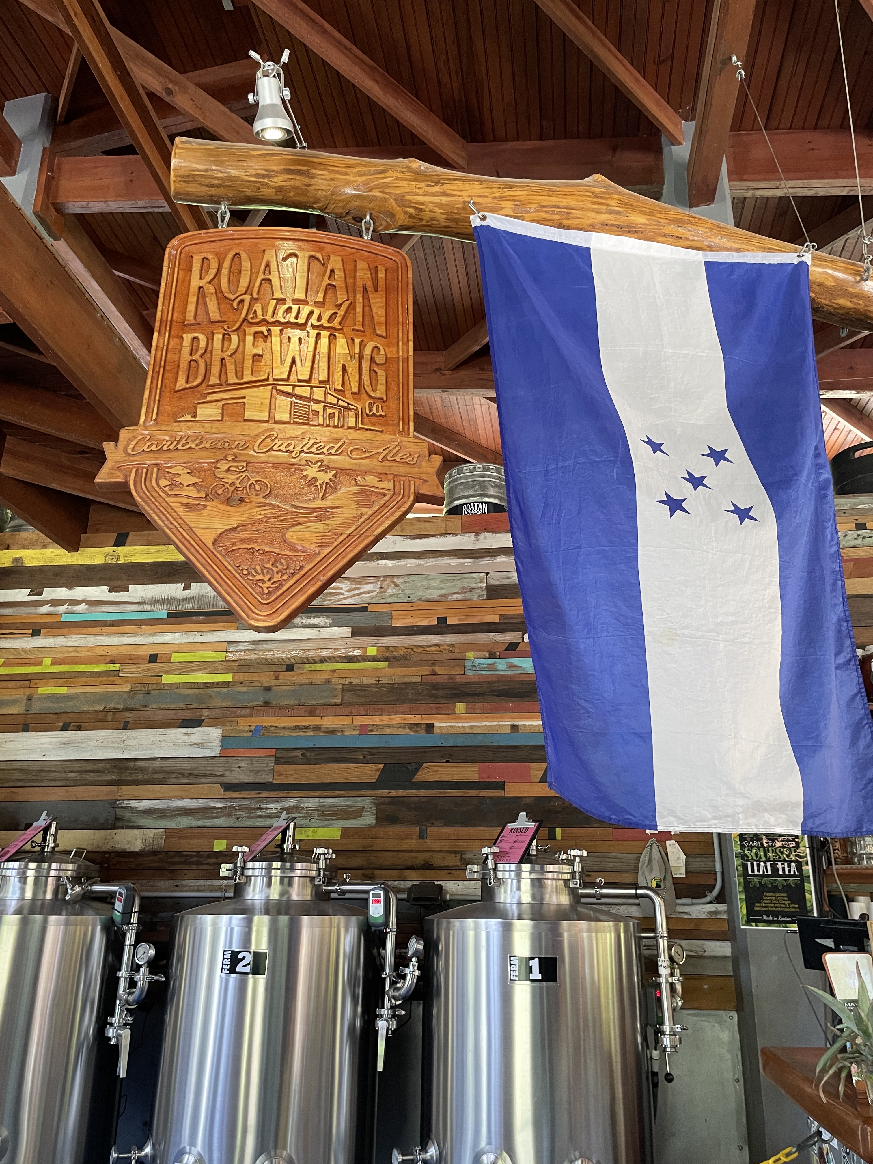 Most days, we wrapped up our dives shortly before lunchtime and headed back to eat at Silversides before diving into work for the afternoon. But on our last day, our dive buddies Alex and Emily suggested that the four of us get dropped off at the Roatan Island Brewing Company for lunch – just to do something a little different.