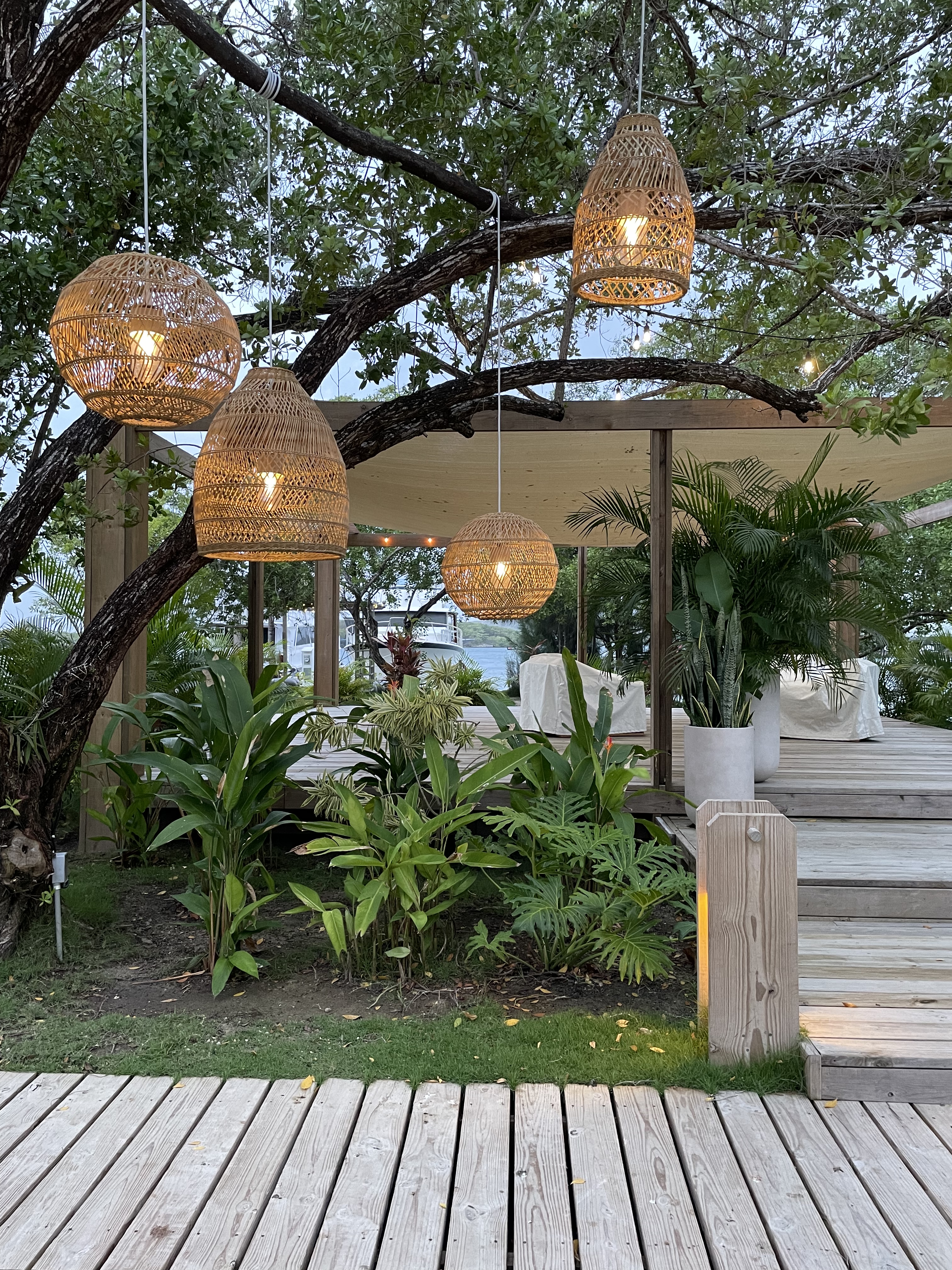 We stayed in a little bungalow right on the beach. There was a family of bats that stayed with us – cuddled up together in the eaves of our porch by day. Too cute! Speaking of cute, but in a totally different sense, I was obsessed with the woven pendant lights hanging from the trees near the resort’s restaurant, Silversides.