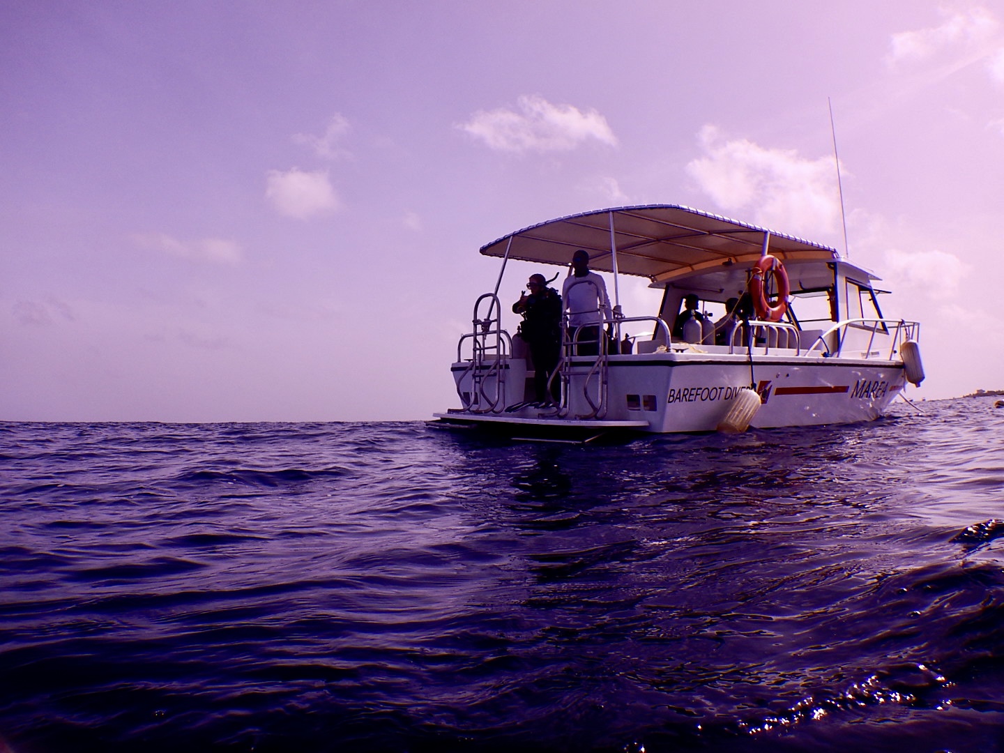 In the mornings, due to the high winds on the East side of the island, we were loaded into a hotel van and driven to the West side to do our dives. One of the hotel’s dive boats was docked by this gorgeous sandy beach, where our captain, Justin, and our divemasters, Danny and Ron, waited for us every morning.
