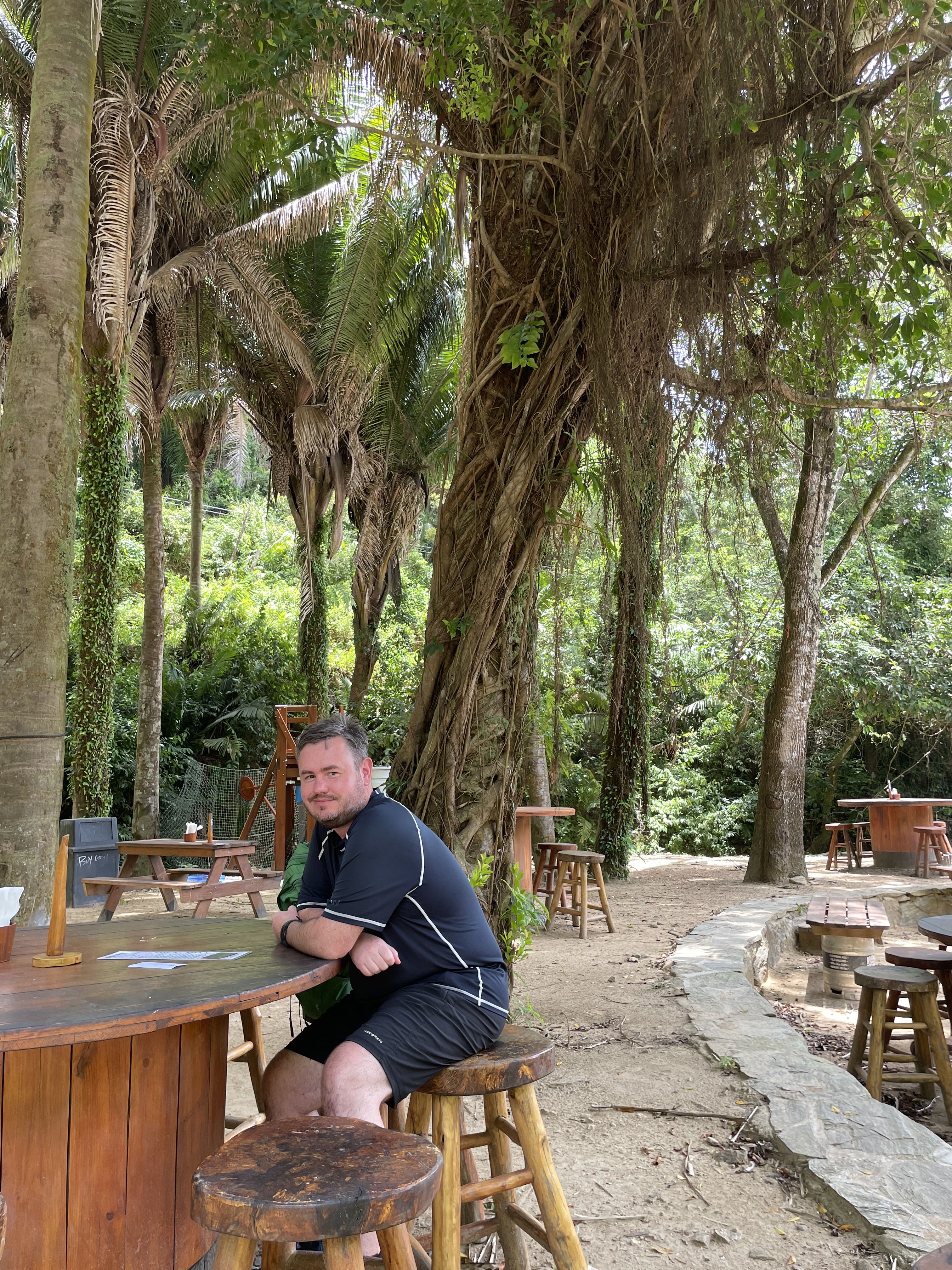 The only ones dressed for hiking, not swimming – ready to walk 500 steps down to the waterfall.