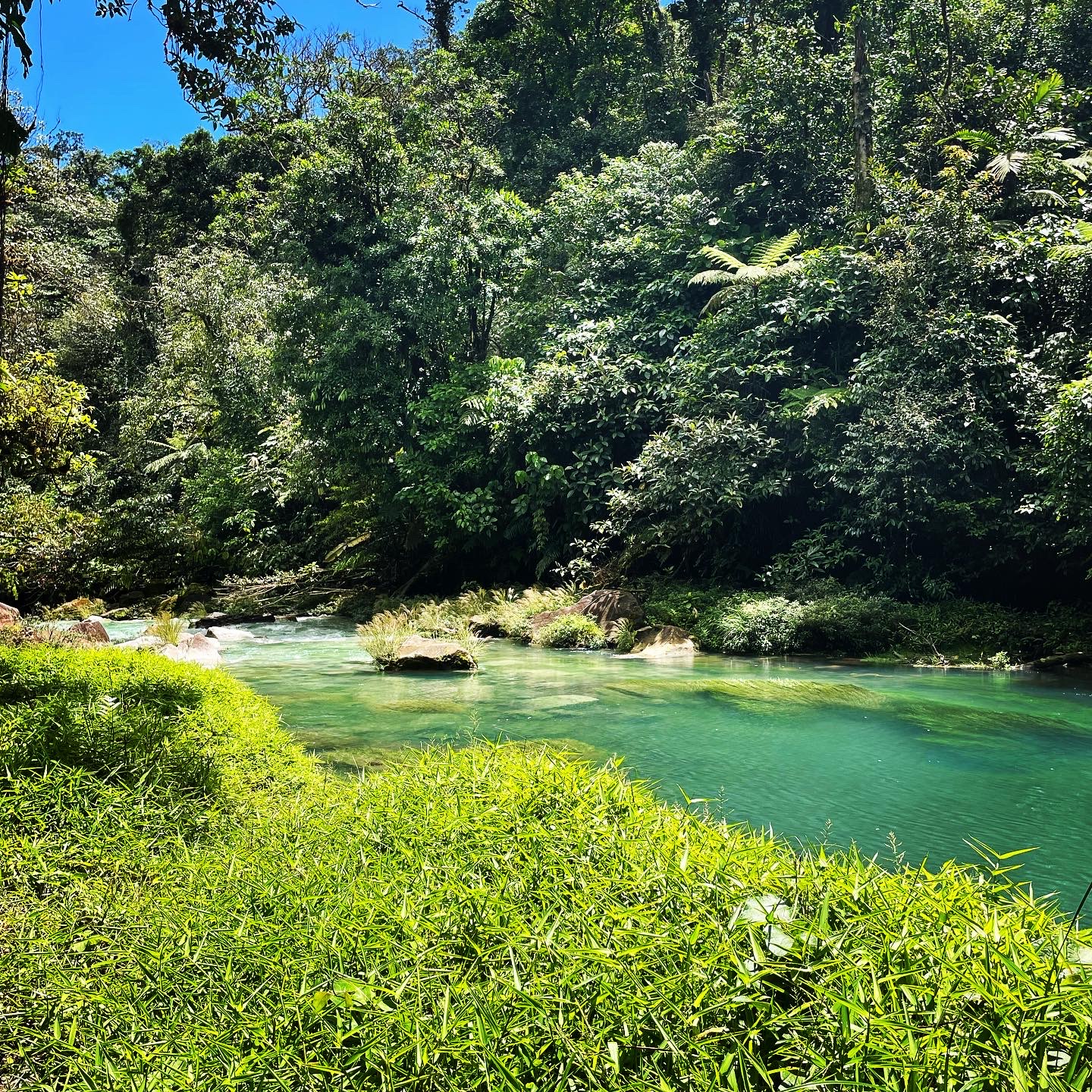 From the blue lagoon, the water continues off downstream – headed for Catarata Rio Celeste, the beauty spot we’d just hiked up from.