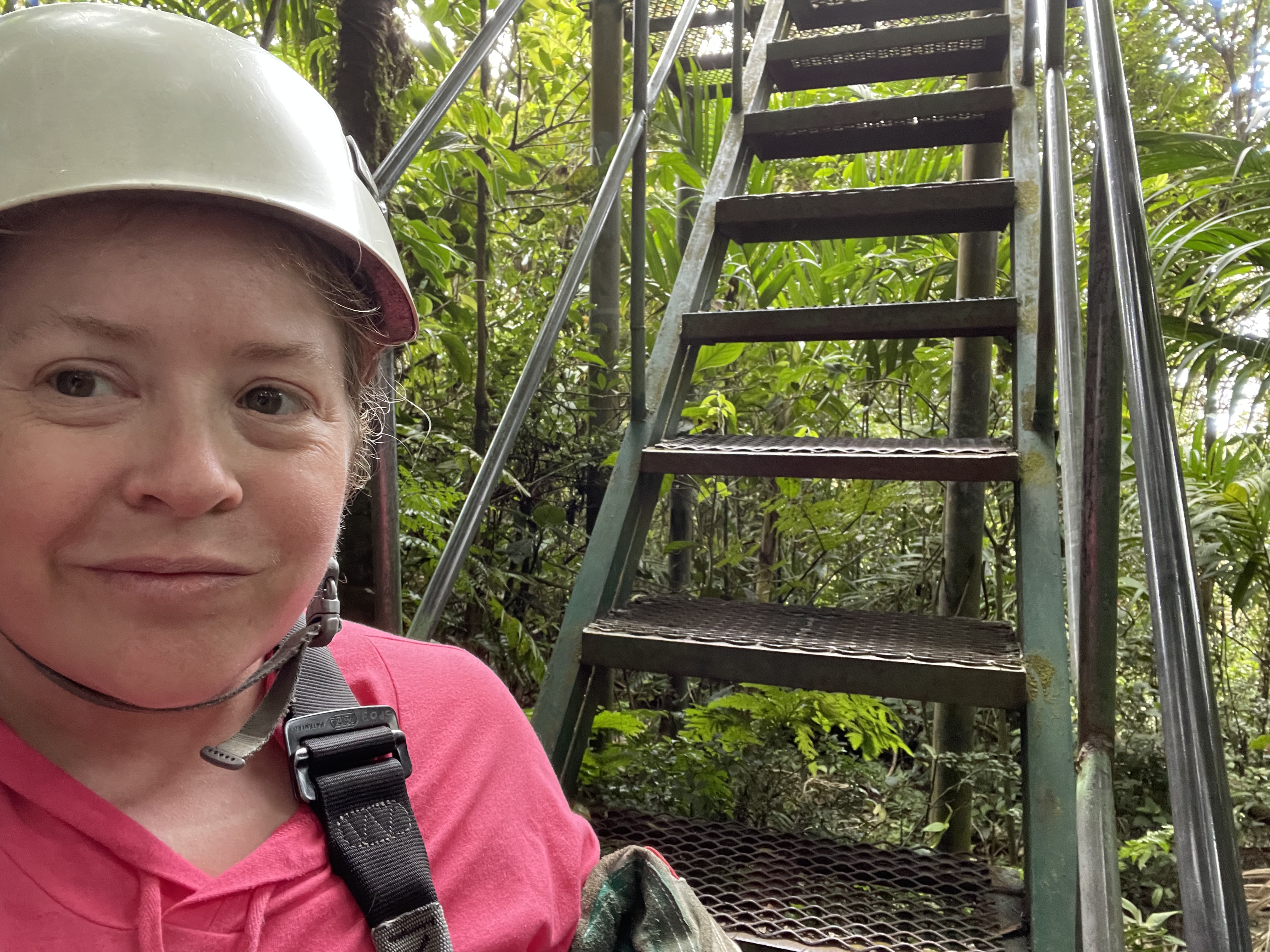 So cool. After we’d all had our fill of the giddy air in the treetops, it was time to clip back in, cross the hanging bridge, and continue on our way. (Steve had a long list of the birds he’d seen while he waited on solid ground.)