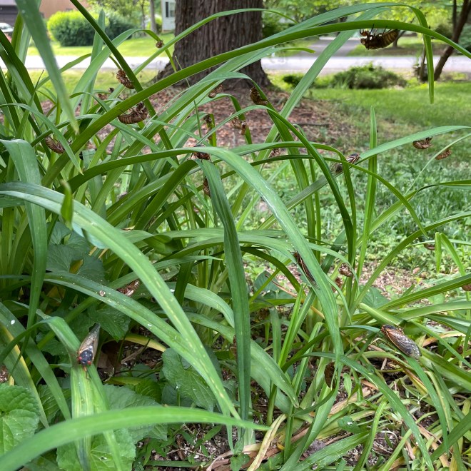 Ohhhhhhh, the exoskeletons. There are abandoned cicada exoskeletons clinging to every leafy plant in my yard. I don’t even want to weed my garden.
