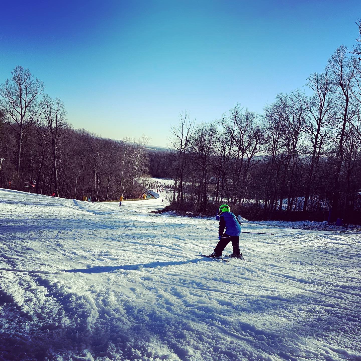 Guess who “leveled up” (I keep explaining there are no levels, per se…) on the mountain yesterday? I finally caved to Nugget’s constant badgering and agreed to let him try his hand at a blue square (those are intermediate runs, for my non-skiing friends) and he did GREAT and loved it! I couldn’t be more pleased. He did a great job controlling his speed and avoiding other skiers, and he had fun – and if he can ski intermediate runs that opens up so much more of the mountain. Including the much less crowded back side of our local mountain, which made a big difference given the wall-to-wall people and apocalyptic lift lines on the front side thanks to holiday weekend crowds yesterday. We had the best mountain day!