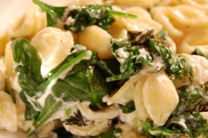 Wine Pairing: Hubby and I are trying to work through the bulk of our wines these days, because we are preparing for a trip to Napa in about a week and a half, and we’re going to be bringing quite a bit home! For this dinner, we poured Pinot Grigio from Doukenie Winery in Purcellville, Virginia. Doukenie is our favorite winery in the region – we are actually members of the wine club there, which requires simply that we buy twelve bottles per year (easy; their wines are delicious). Pinot Grigio is normally not my choice. I once received a bottle as a gift and it had oxidized. Ever since then, I have been turned off by Pinot Grigio and will almost always choose Sauvignon Blanc or a more obscure white instead. But Doukenie’s PG is very nice, crisp and yet smooth, with mellow fruit aromas. It’s making headway toward changing my mind about Pinot Grigio, and I think it worked well with this dish. I’d also recommend a northern Italian white, or a lighter-bodied Italian red such as Barbera d’Asti. If you substitute pork sausage for the chicken or turkey, you could pair it with Chianti and it would be delightful. Enjoy!